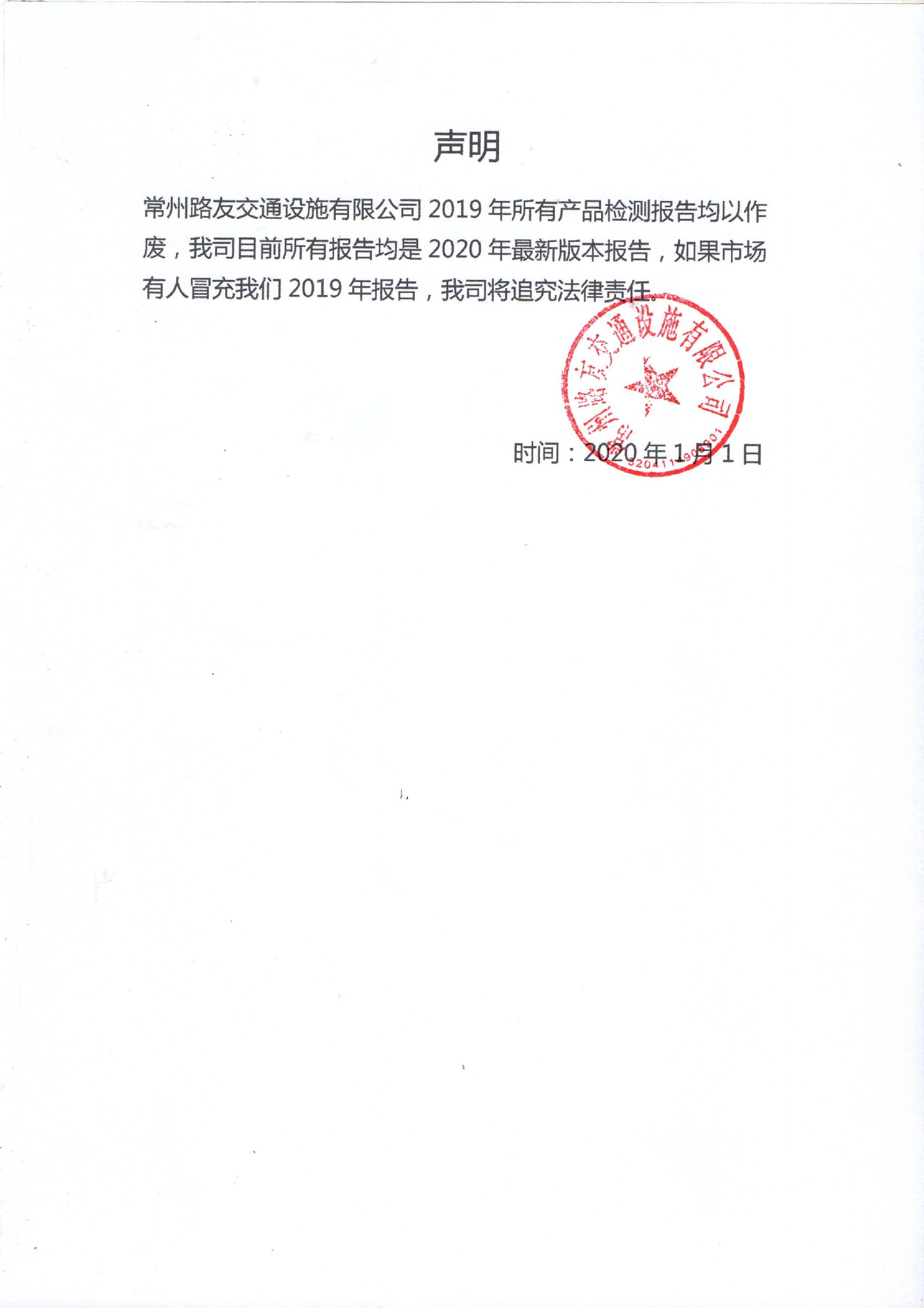 • 路友公司2020重大聲明